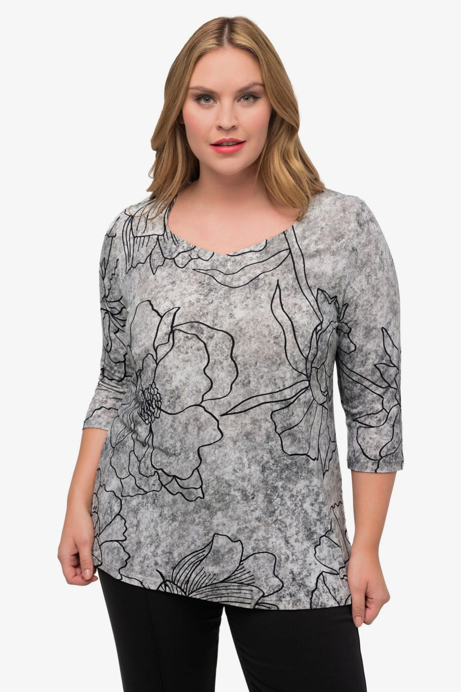 Ulla Popken T-shirts à Manches 3/4 T-shirt Femme Gris Clair