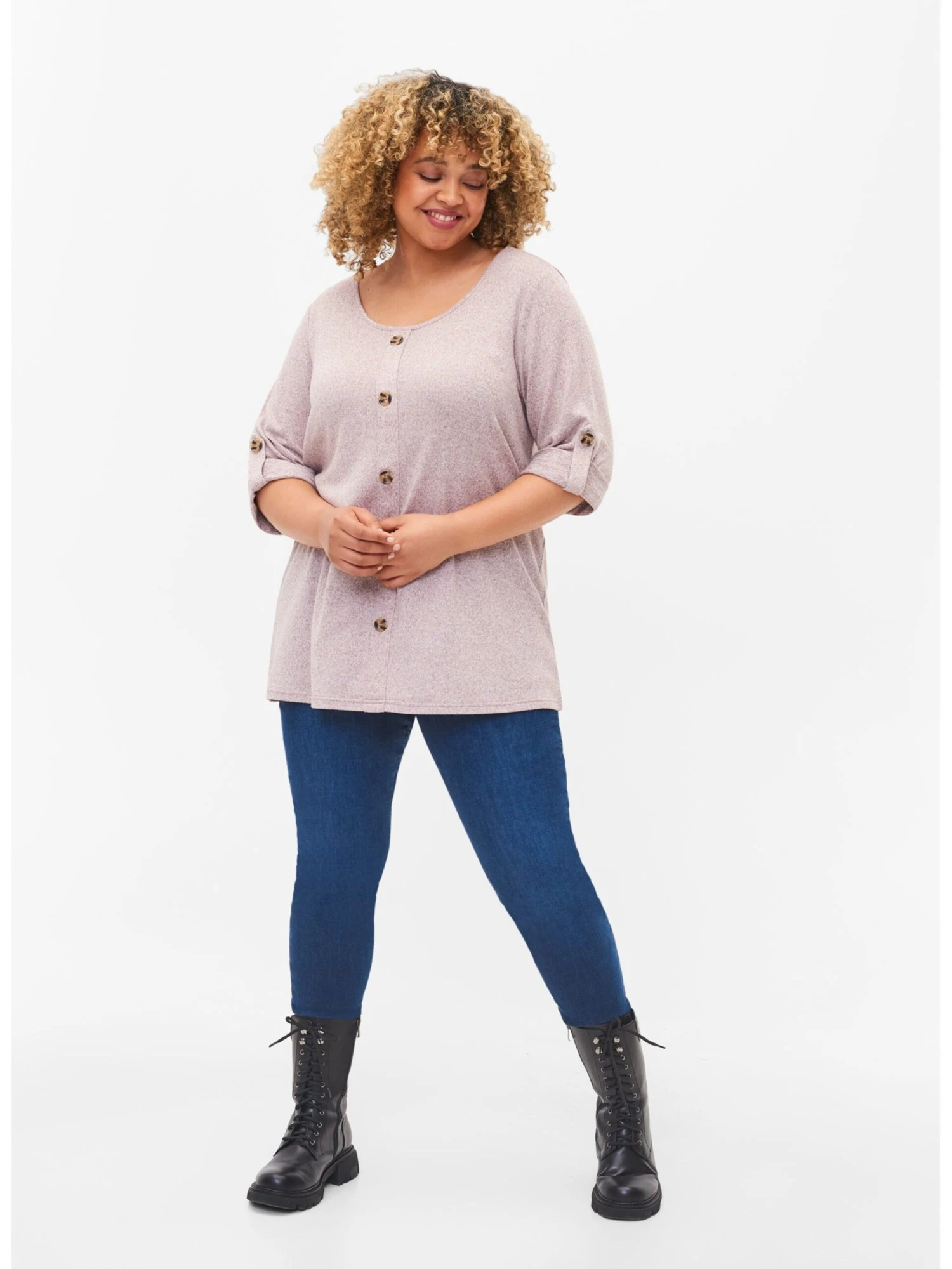 Zizzi T-shirts à Manches 3/4 T-shirt Vlucca Femme Beige Chiné